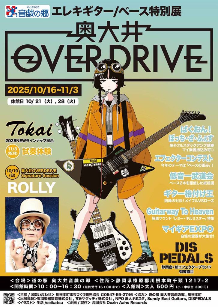 「奥大井OVER DRIVE 2025」 2025年9月24日 最終更新日時 : 2025年9月30日 sunada イベント開催日:2025年10月16日(木)~11月3日(月祝) ギターに関する企画展で、ギター展示・試奏、聴き比べクイズ、ROLLYトーク&演奏、Tokai新作試奏会、限定グッズ販売 実施エリア川根本町実施期間2025年10月16日(木)~11月3日(月祝)実施会場道の駅『奥大井音戯の郷』静岡県榛原郡川根本町千頭1217-2実施主体川根本町まちづくり観光協会 詳しくはこちら FacebookXCopy
